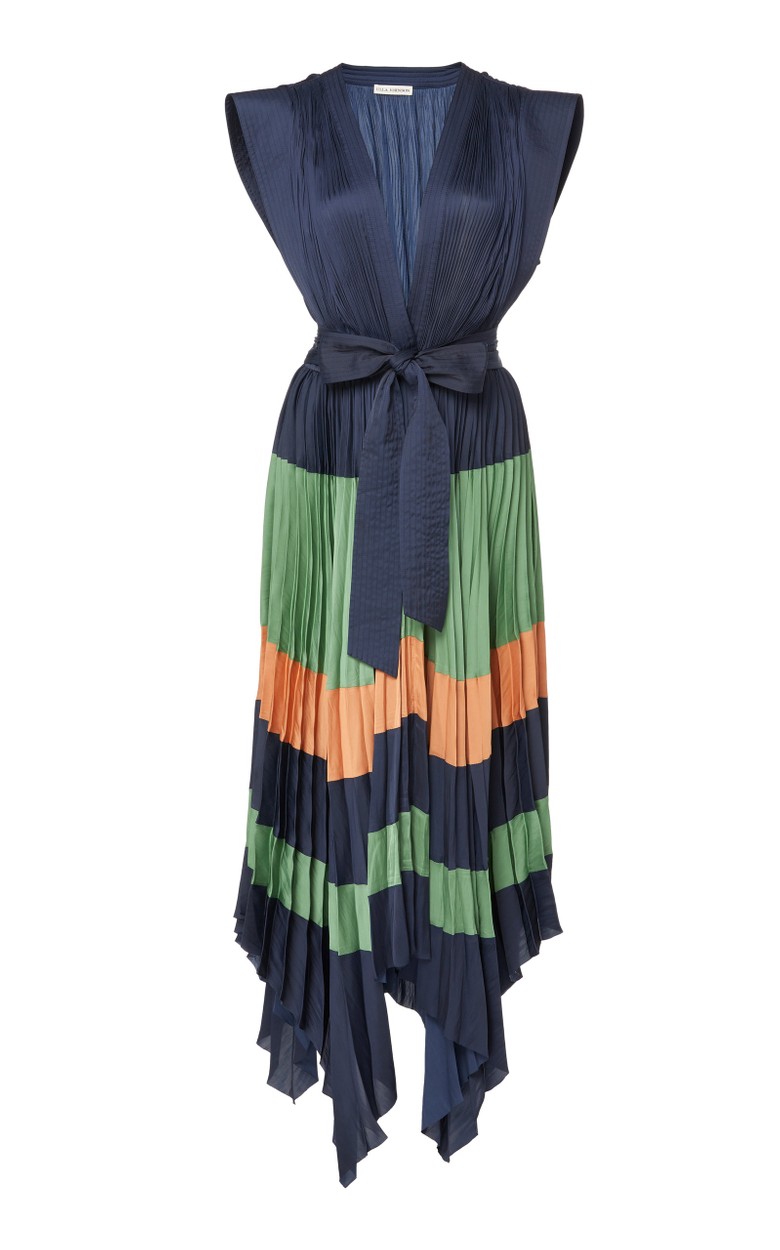 Striped Satin Dress With Plunging Neckline