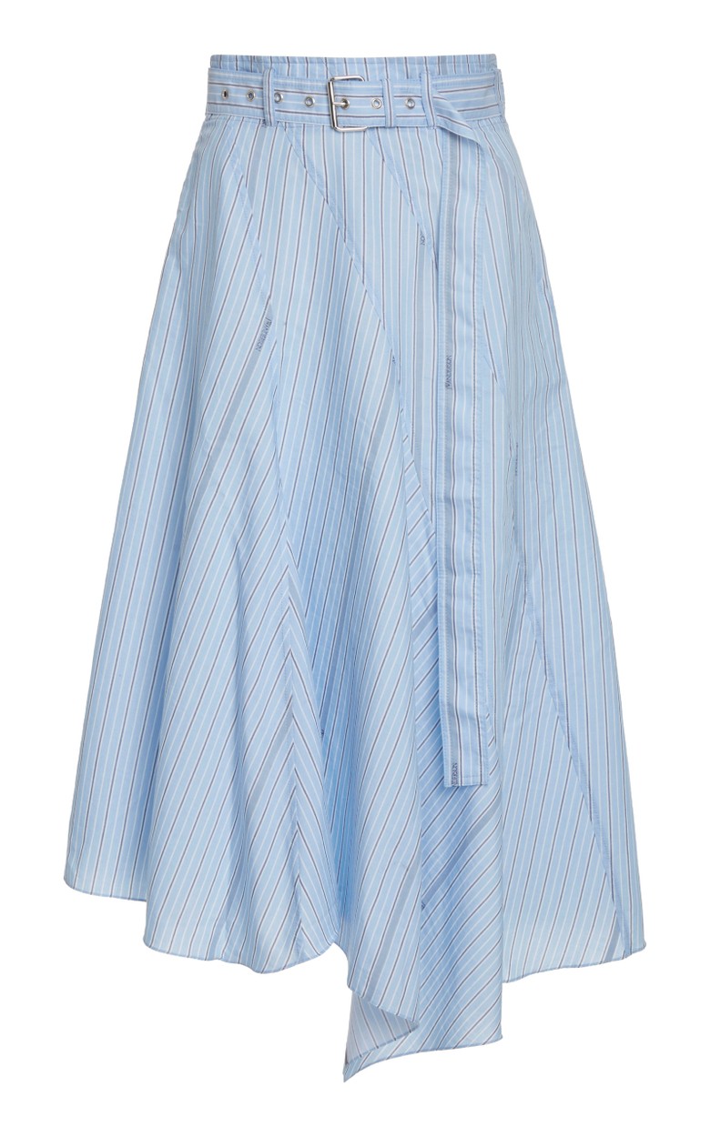 Belted Striped Asymmetric Midi Skirt